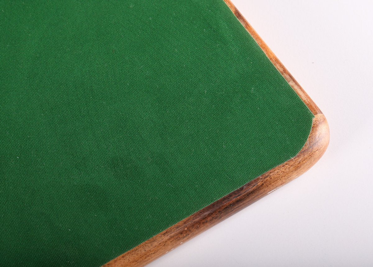 This 15" inch wood board with highly visible, "peppered" and streaked Acacia grain patterns, maple squares and border inlay is a solid choice at a great price.