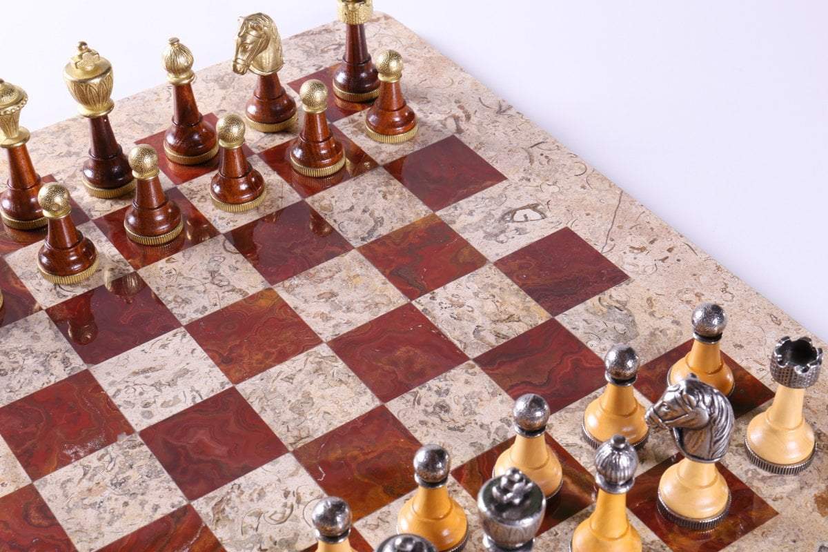 This beautiful marble board is made in Pakistan and measures 16". The pieces are handmade in Italy of both metal and wood and stand at 3" tall.