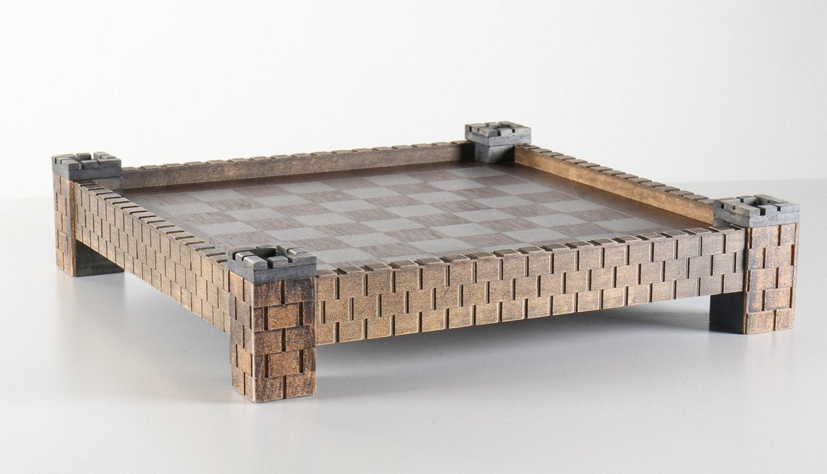This 17" Fortress Chessboard's aged castle grounds pair nicely with any medieval chessmen such as the legendary King Arthur, who according to folklore, defended Britain from the Saxon invaders in the 5th and 6th centuries.