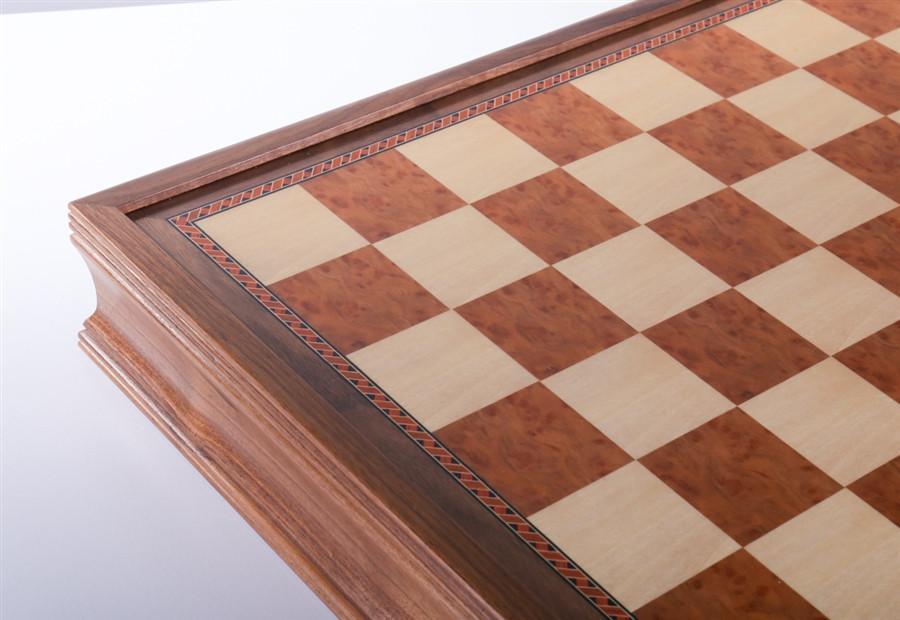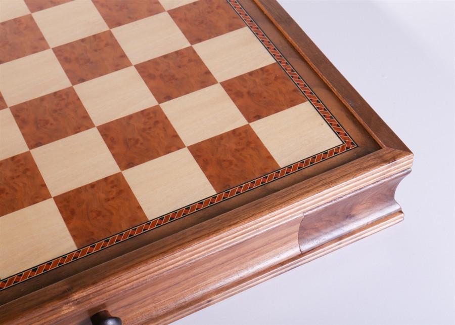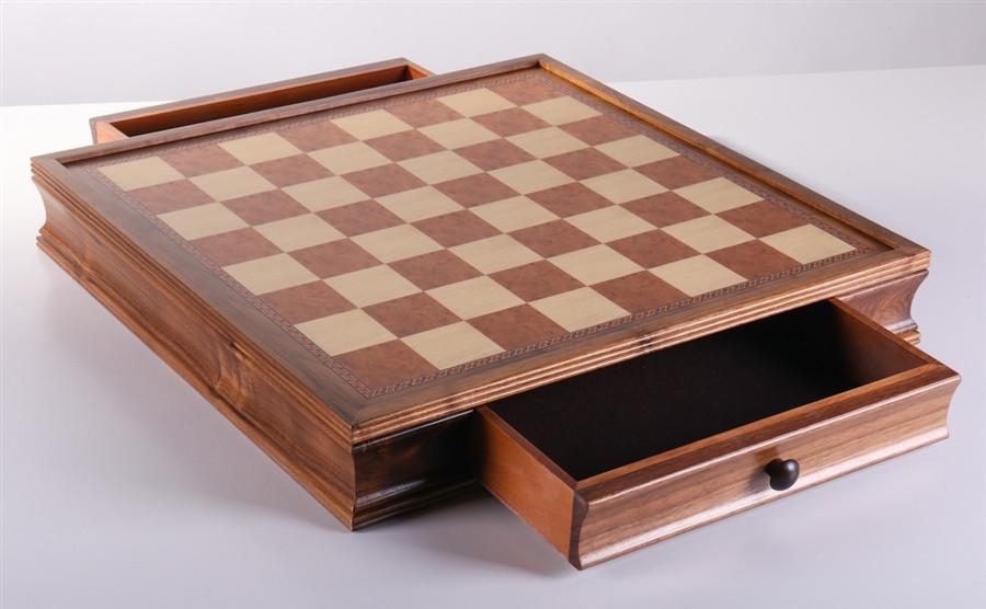 An intricate inlay and fine details frame the storage drawer. The dark brown camphor wood will make you feel nostalgic for the days of playing chess with dear ol' grandpa. Make new memories with this classic chess board with storage.