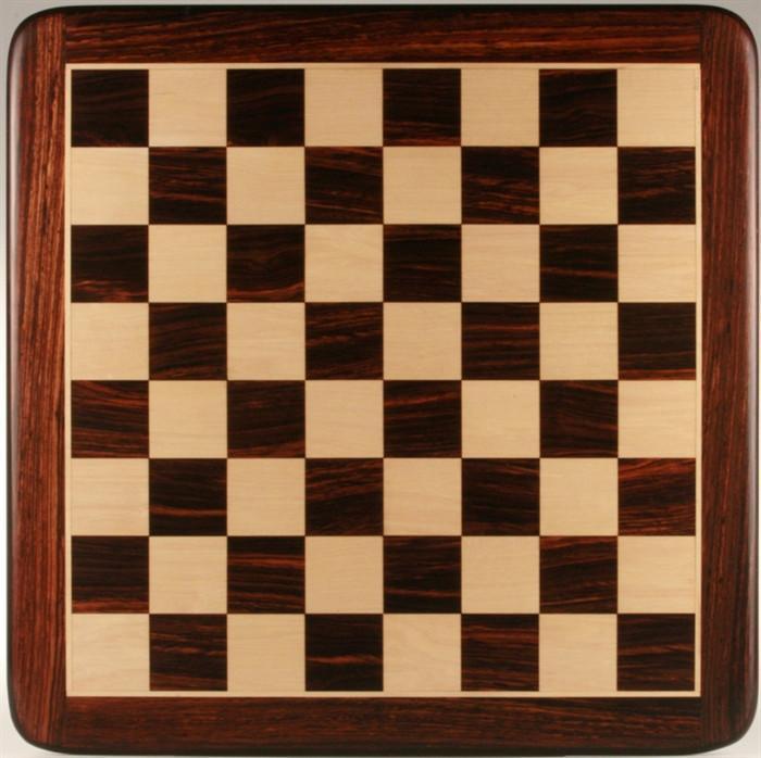 Smoothly finished, solid wooden chessboard, crafted from genuine, rosewood and white maple. Well-preserved, nicely contrasting natural wood grains are protected with a smooth, clear lacquer finish. Board base is also felted to protect the surface you place it on.