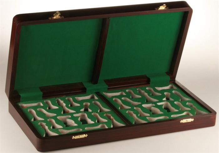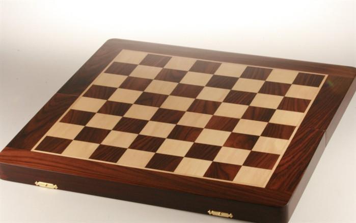 Furniture smooth finish, 20" folding chess piece storage box secures pieces individually. Handcrafted from from genuine rosewood and white maple. Natural wood grain is protected with a clear lacquer finish.