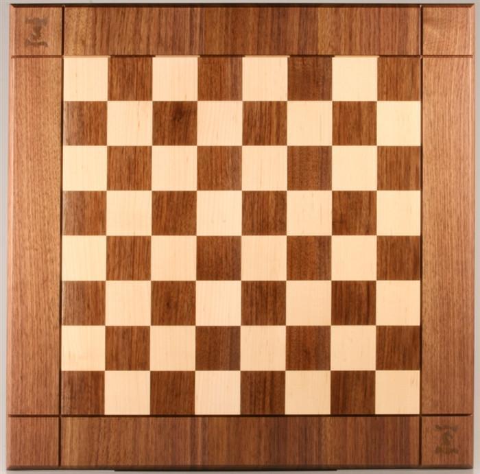 Players, admirers, and those who enjoy well-made USA products will appreciate the superior workmanship and finish evident in the Player's Chess Board. The Player's board uniquely features decorative grooves running along the squares perimeter, beveled stylish edge, and engraved two emblems in corners to the player's right. Precision aligned hardwood block construction is given multiple protective finishes for a distinctive, luxuriously smooth surface. It is handcrafted in Pennsylvania from locally sourced premium walnut and maple woods.