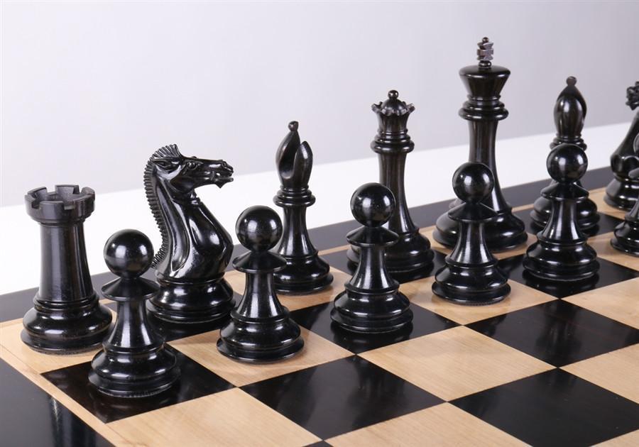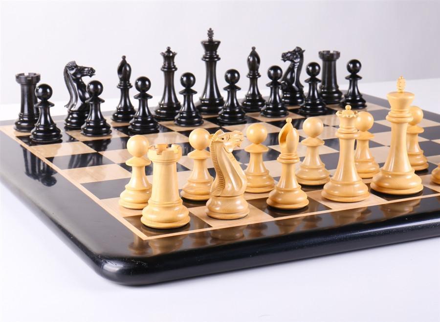 An exclusive luxury chess set for the refined chess player! This stunning 21" ebony chess board with triple-weighted, hand polished, Ebony and Kari chessmen is in Staunton style with beauty and fine craftsmanship.