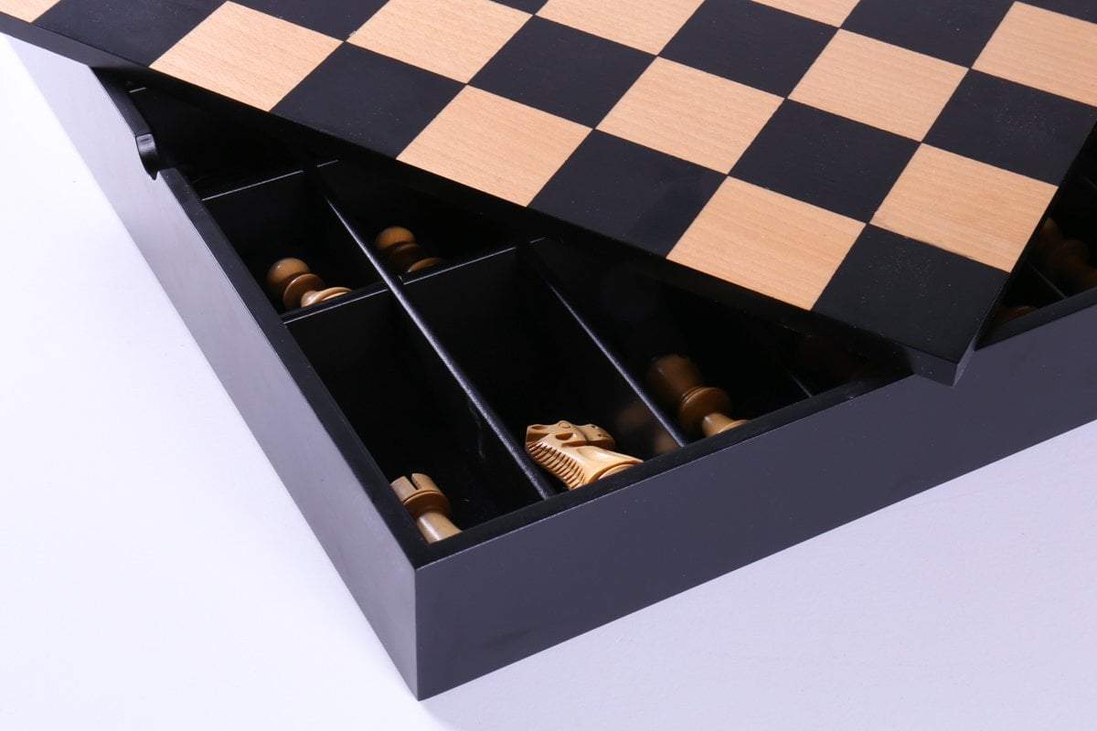 Need a beautiful chess set with storage and a stunning conversation piece for your room? This deluxe, handsome, hand-polished Kari wood set of weighted pieces compliments the storage board amazingly well.