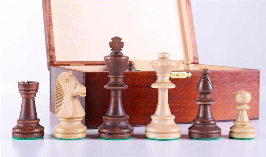 3 3/4" Standard Staunton Chess Pieces #6 in Dark Wood Box