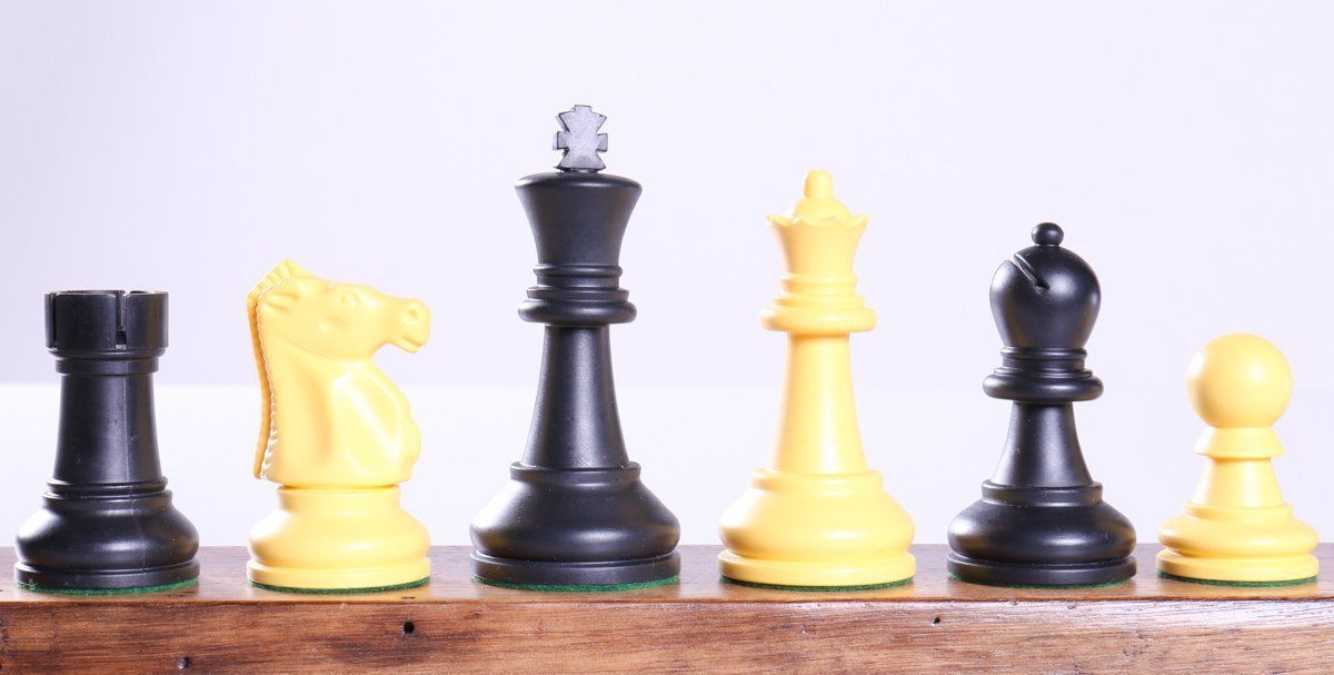 The unmistakable feel of these heavily weighted pieces gives a positive touch to your game. Extra weight near the base of the pieces makes them very stable, highly recommended for blitz chess. These pieces were reproduced in a more brilliant yellow color for 2018 and increased in size marginally to the current 3.75" tall.